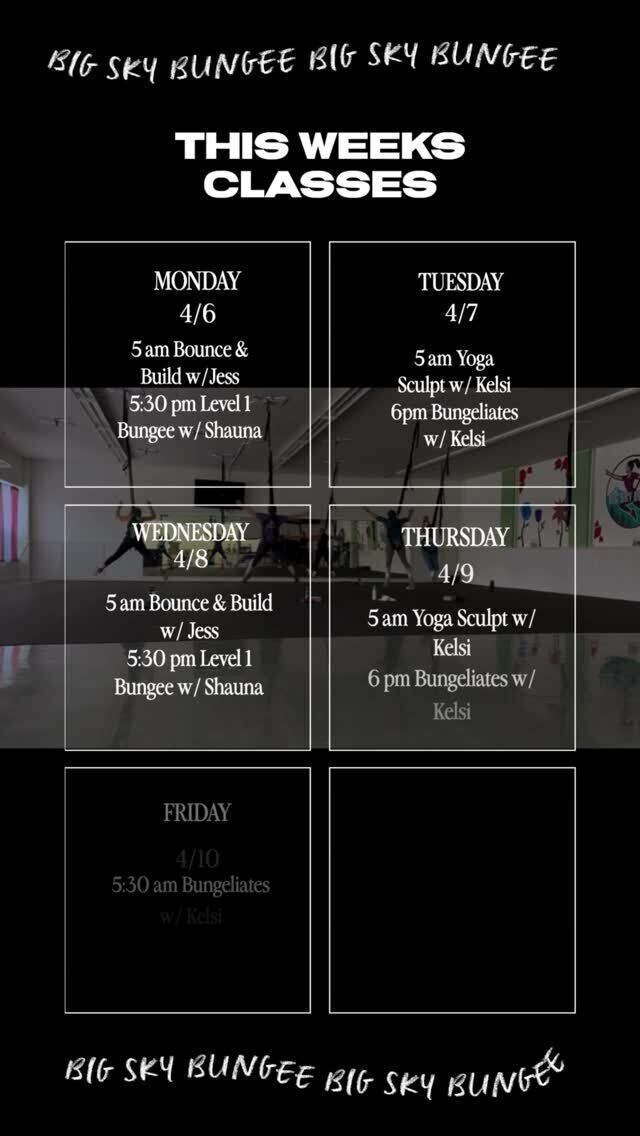 Experience a unique and exhilarating workout at Big Sky Bungee in Great Falls, MT. Combining cardio, strength, and resistance training with the thrill of flying, this innovative studio offers a high-energy, low-impact fitness experience that defies gravity and redefines how you move. Strap in, jump, and soar toward your fitness goals in a supportive, uplifting environment.