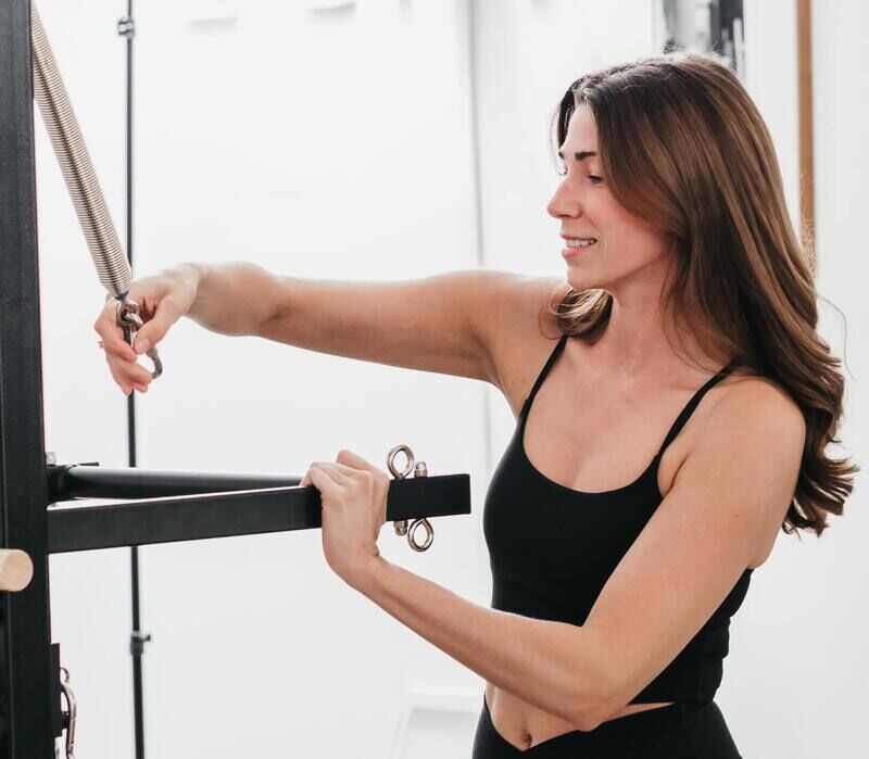 Modern boutique Pilates studio offering Reformer, Cadillac, Tower, Chair, Barrel, and Mat classes in Creve Coeur