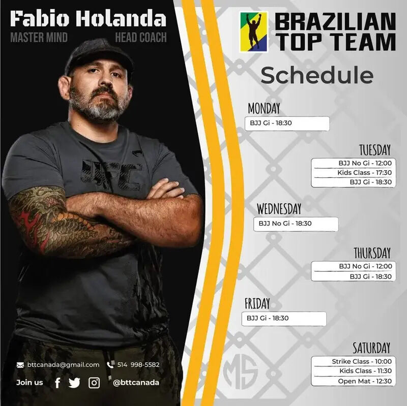 BTT Canada. is located in Montreal, Canada. Notre succursale de Montréal offre des cours de Jiu Jitsu Brésilien, Muay Thai, Judo et Étirements. Train with champions at Brazilian Top Team Canada, the premier Brazilian Jiu-Jitsu and MMA academy. Join our world-class instructors for beginner to advanced classes in a supportive, high-performanc.... Official website: https://bttcanada.ca/emplacements/montreal/. Instagram: @bttcanada