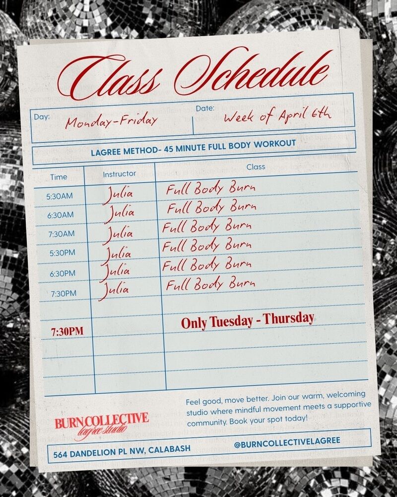 Experience Calabash’s first Lagree studio at Burn Collective, where high-intensity, low-impact workouts combine slow, controlled movements with innovative LED and infrared heat therapies. Discover a unique fitness environment dedicated to building lasting strength and enhancing overall wellness through scientifically proven techniques.
