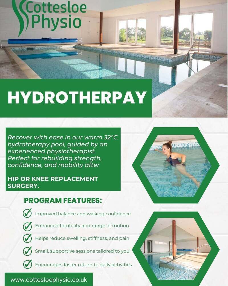 Experience personalized physiotherapy sessions led by Chartered Physiotherapists at Cottesloe Physio in Leighton Buzzard. Whether at our clinic or in the comfort of your home, our expert care focuses on pain relief, strength building, and injury prevention through tailored programs including Pilates, hydrotherapy, and sports physiotherapy. Discover a welcoming environment committed to helping you move better and feel your best.