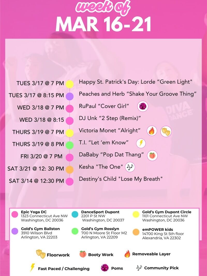 Experience a fun and empowering dance workout in Washington, DC, with DivaDance’s lively classes set to popular pop hits. Combining sexy choreography with a stress-free vibe, these sessions are hosted at various local venues, making fitness both exciting and accessible. Join the community and spice up your routine today!