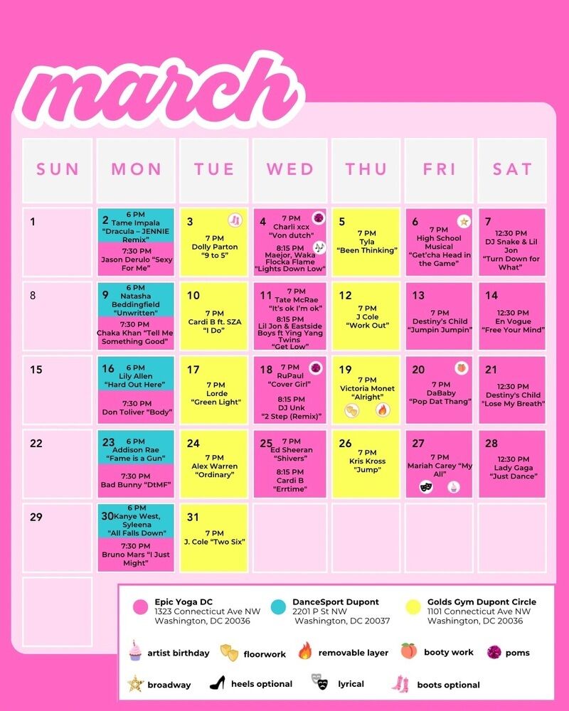 Fun and empowering dance workout classes set to popular pop hits in Washington, DC