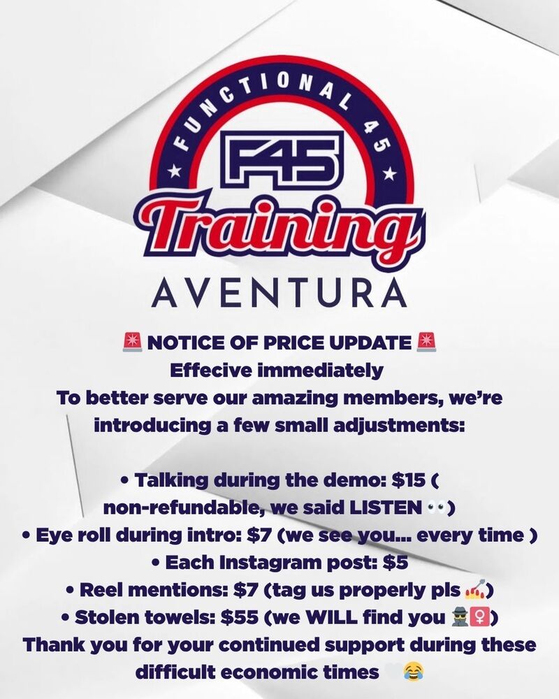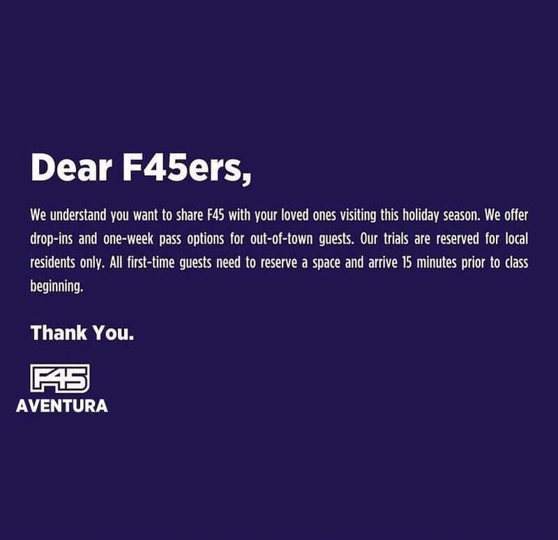 Join F45 Training Aventura for 45-minute high-energy HIIT and functional workouts!