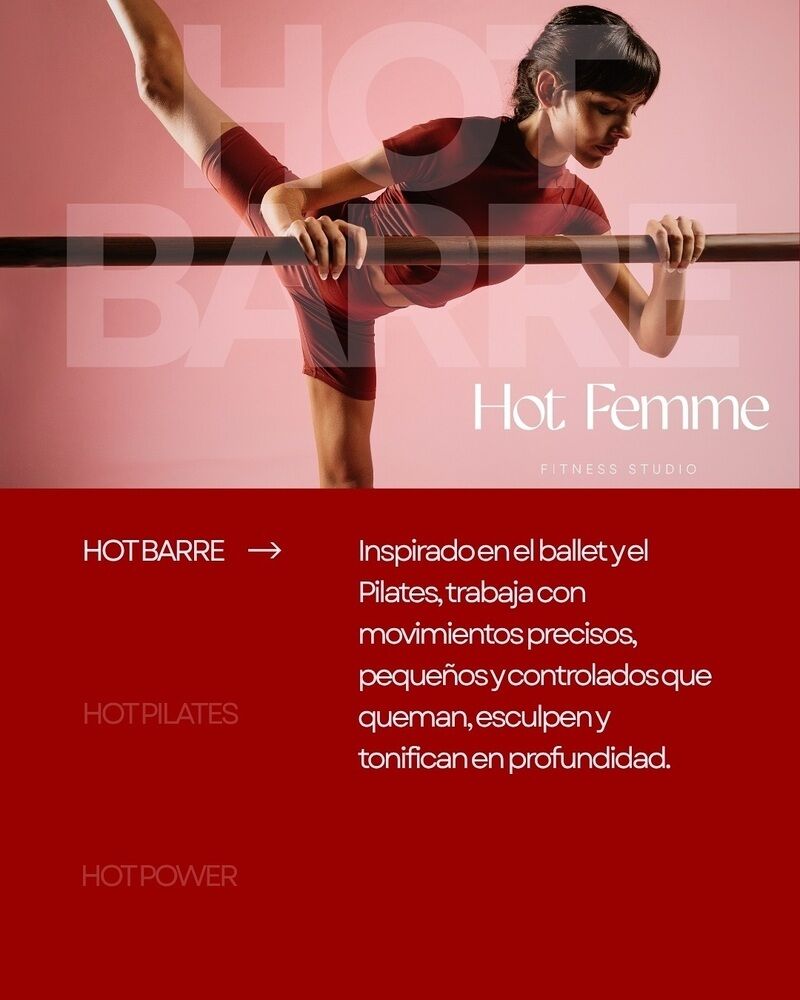 Experience a empowering fitness journey at Hot Femme in Barcelona, where Pilates, Barre, and Power Training are combined in a warm 35º environment to boost strength, flexibility, and energy. Enjoy flexible class options and exclusive access to our women-only spa, including a jacuzzi, infrared sauna, and cold plunge, in a supportive community dedicated to celebrating female strength and confidence.
