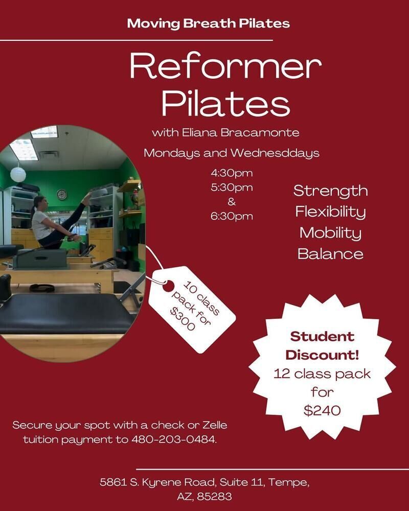 Discover the vibrant energy of Moving Breath Pilates Studio in Tempe, where expert-led classes blend the art and science of movement. From private sessions to dynamic group classes, experience a professional, peaceful atmosphere dedicated to enhancing your health and vitality.