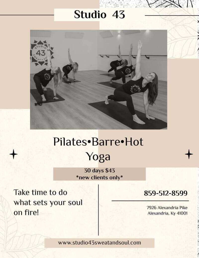Discover a welcoming oasis in Alexandria offering yoga, hot yoga, barre, Pilates, and reformer classes designed to promote health and wellness for all. Studio43 Sweat+Soul creates an intimate, supportive atmosphere where you can focus on your practice and feel at home. Join us to strengthen, stretch, and rejuvenate in a community that cares.