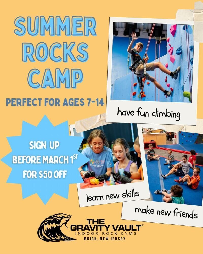 Discover the thrill of indoor rock climbing at The Gravity Vault Brick, NJ, where a vibrant, welcoming atmosphere meets top-notch bouldering and top rope routes. Whether you're new to climbing or an experienced enthusiast, enjoy a fun, safe environment with added amenities like a sauna to relax after your session. Join the Jersey Shore's best climbing community today!