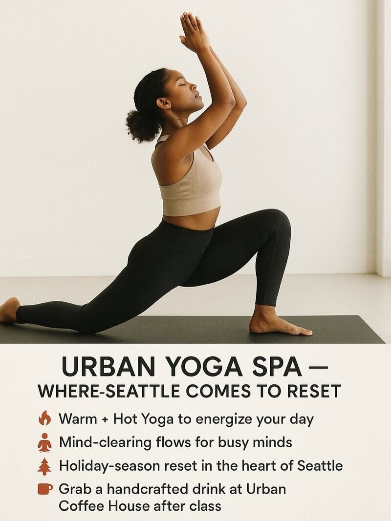 Discover Urban Yoga Spa in downtown Seattle, where hot and power vinyasa classes blend strength and fluidity to energize your day. This modern wellness haven offers a unique combination of hot yoga, relaxing spa services, and a cozy café, perfect for your mind and body reset.