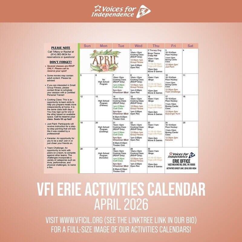 Discover a welcoming community space in Erie offering more than just fitness-Voices for Independence features on-site gyms and social activities designed to foster independence and connection. Join us in a supportive environment that goes beyond traditional workouts to promote wellness and community engagement.
