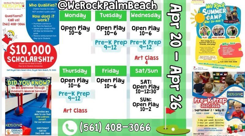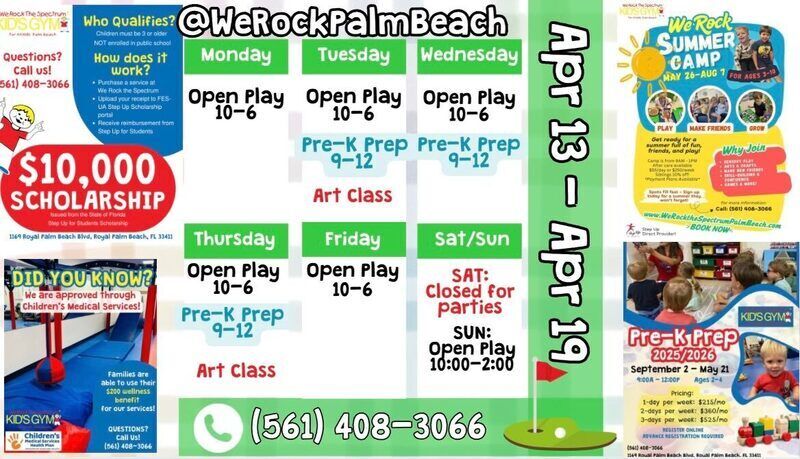 We Rock the Spectrum Palm Beach, located at 11300 Poinciana Blvd, focuses on functional training tailored for children with diverse abilities. The studio combines sensory and open play activities with therapeutic and social skills programs, providing a supportive space that promotes physical development and social interaction.