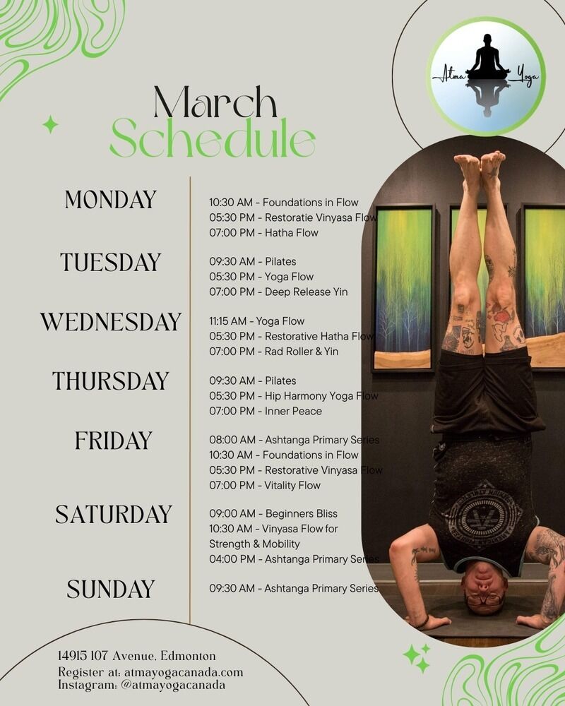 Discover Atma Yoga in Edmonton, a boutique studio dedicated to transforming your practice through a variety of yoga styles, including Hatha, Vinyasa, and Yin. With small class sizes and a warm, inclusive atmosphere, it’s the perfect place to feel supported and inspired on your wellness journey. Join us and experience yoga that nurtures both mind and body.