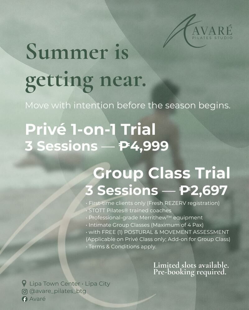 Discover the first boutique Pilates studio in southern Batangas, where every session is crafted to help you align, elevate, and thrive. Enjoy personalized Pilates workouts complemented by relaxing sauna and cold plunge experiences in the heart of Batangas City. Move with purpose and invest in your wellness journey today!