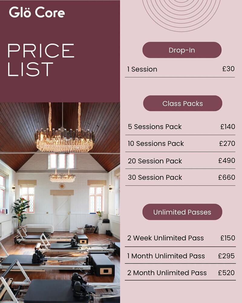 Experience a personalized, full-body Pilates workout at Glo-Core in Addlestone, led by certified instructors. Enjoy the rejuvenating benefits of reformer Pilates in a welcoming environment designed to enhance strength, flexibility, and mobility. Book now to discover a new level of fitness tailored just for you!