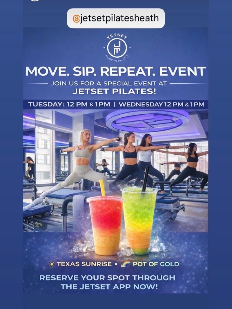 JETSET Pilates Heath, located in Heath, United States, offers an immersive 50-minute full-body workout utilizing custom reformers that blend strength training, cardio, and Pilates-inspired movements. This dynamic class is designed to sculpt, tone, and energize participants, providing a comprehensive fitness experience that caters to various wellness goals. With a modern approach to Pilates, JETSET Pilates Heath is dedicated to helping clients achieve optimal health and fitness.
