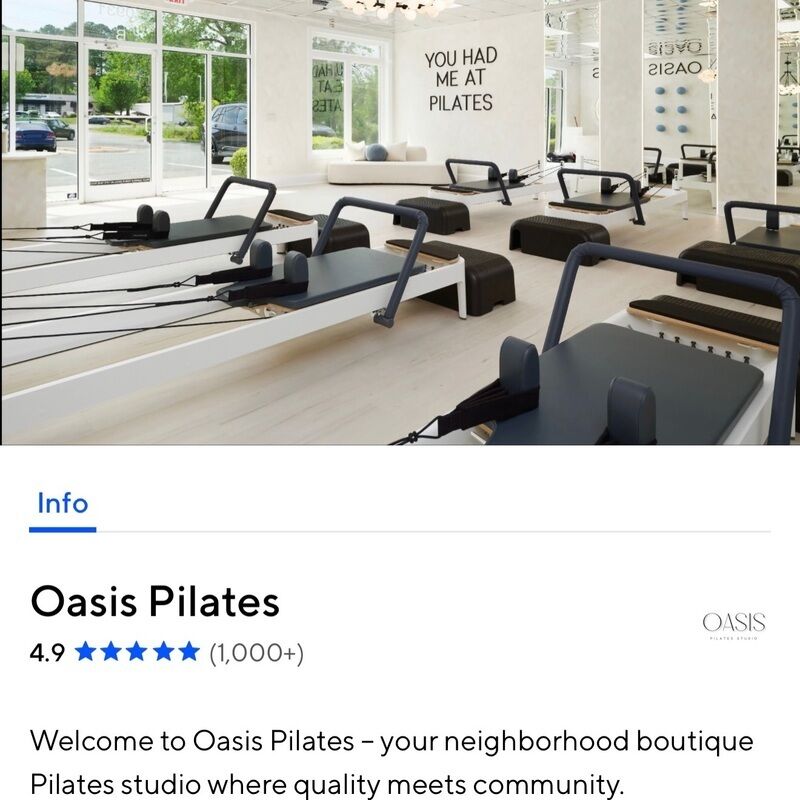 Oasis Pilates. is located in Charlotte, United States. Why Oasis Pilates? We believe that Pilates is more than just a workout - it's a journey toward strength, balance, and well-being. Our small group classes (max 6 students) ensure personal attention in a calm, inspiring studio. 2,232 Followers, 0 Following, 38 Posts - @oasispilatesclt on Instagram: .... Official website: https://oasispilatesclt.com/. Instagram: @oasispilatesclt