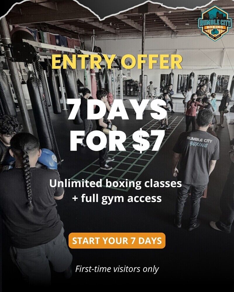 Rumble City Boxing, located in Downtown San Jose, is a premier fitness and wellness studio dedicated to empowering individuals through boxing. Catering to all skill levels, from beginners to competitive fighters, the studio offers structured programs focused on fitness, self-defense, and competitive training, supported by expert coaching and a strong community. With a commitment to transformation, Rumble City Boxing invites everyone to experience the benefits of boxing in a welcoming environment.